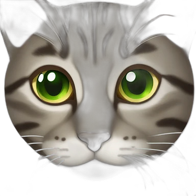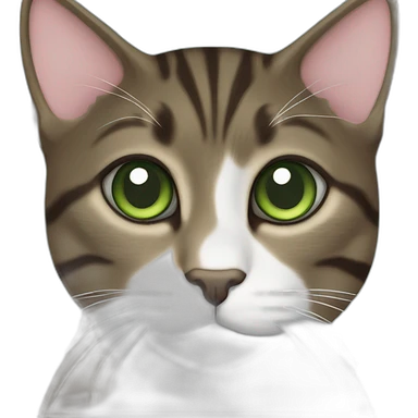 Dark brown tabby cat with brown-green eyes, black nose and white neck emoji