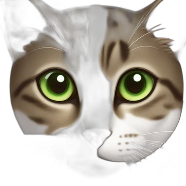 Dark Brown and white tabby cat with green eyes and Siamese blue eyed cat emoji