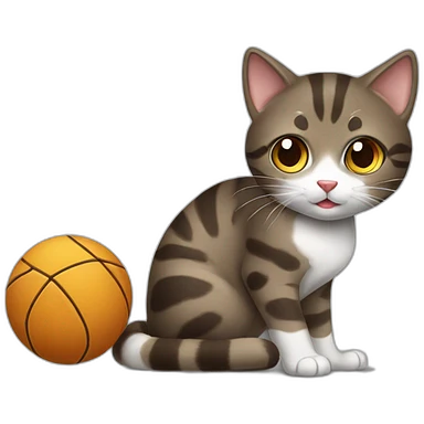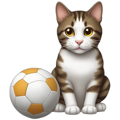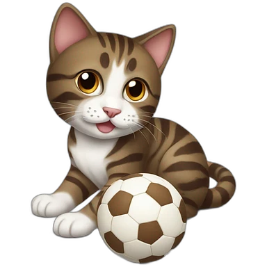 Dark brown and white Tabby Cat playing with a ball emoji | AI Emoji Generator