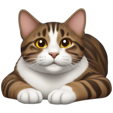 Dark brown and white Tabby Cat with green eyes laying on the side emoji