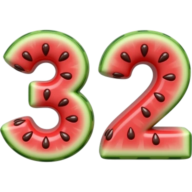 👉 TWO👉 "numbers 32 and made of watermelon texture, red and green colors, 3D glossy, smooth rounded shapes, cute cartoon style, isolated on white background, high detail" emoji