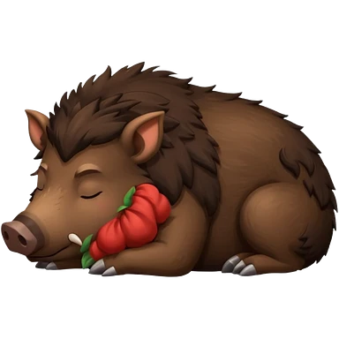 Dark brown golden doodle with fluffy fur wearing a red Christmas scarf emoji
