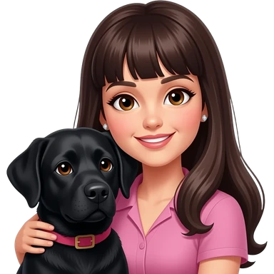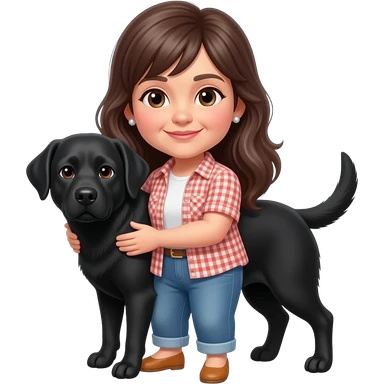 A beautiful girl with dark brown hair who hugs a black Labrador emoji