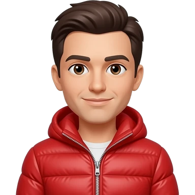 A character wearing a bright red puffer jacket, dark brown hair. emoji