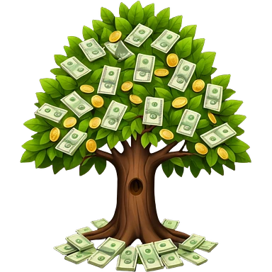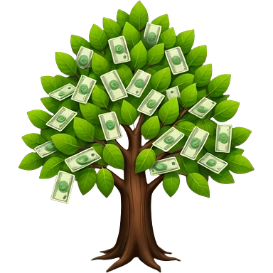 A tree with the leaves with money on it (keep the bark of the tree is still dark brown.* emoji