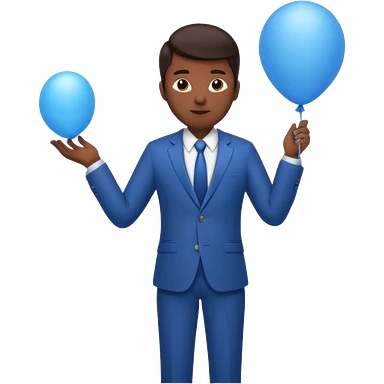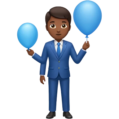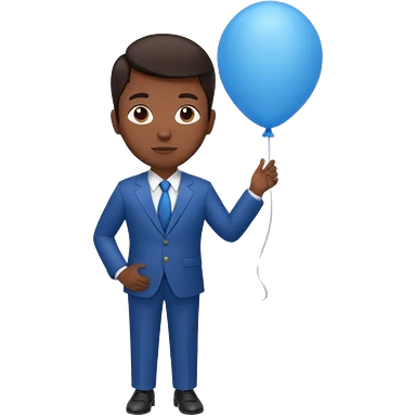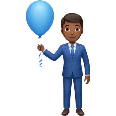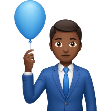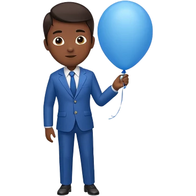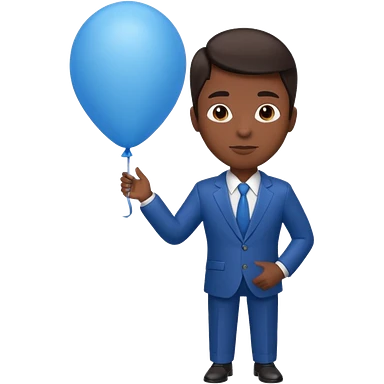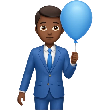 dark brown skin, office suit, hold blue balloon emoji