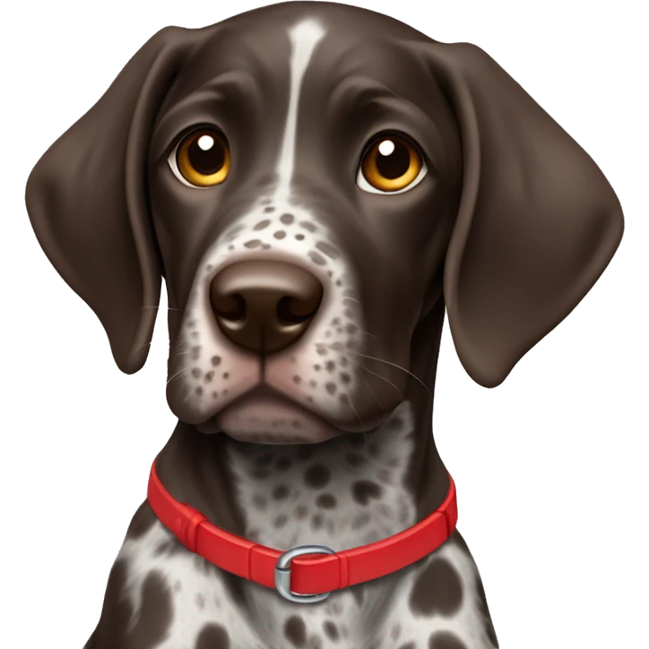 Dark Brown spotted German short haired pointer puppy with ticking with red collar emoji | AI Emoji Generator