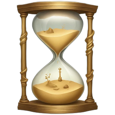 A broken but still ticking sand clock with ancient design and shining glass emoji