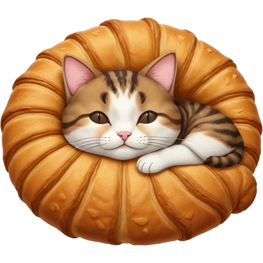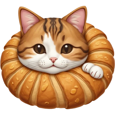 Kat dat een baguette eet met een croissant emoji