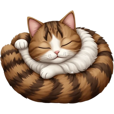 dark brown tabby and white cat in croissant position upside down with eyes closed emoji | AI Emoji Generator