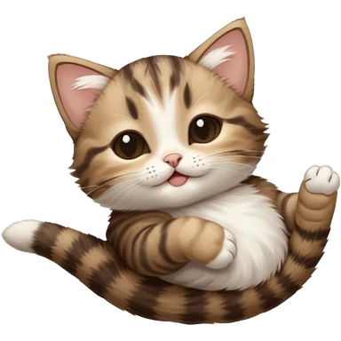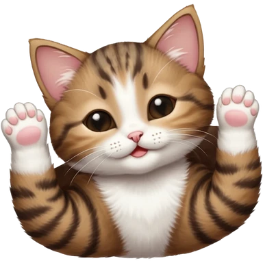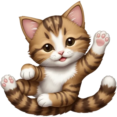 dark brown tabby and white kitten in funny positions stretched our upside down with eyes closed emoji