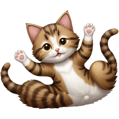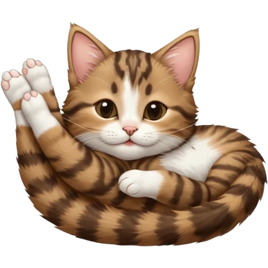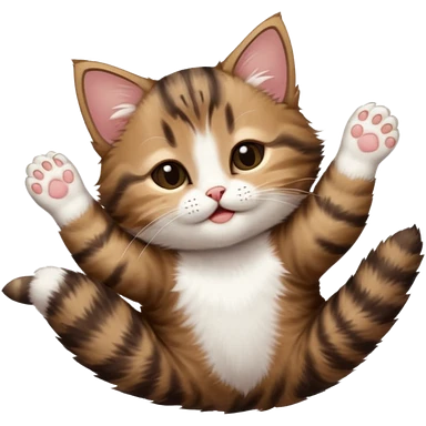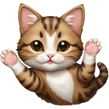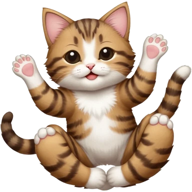 dark brown tabby and white kitten with his eyes closed whilst in funny positions stretched out and upside down emoji
