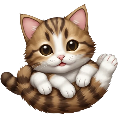 dark brown tabby and white kitten in funny positions upside down with eyes closed emoji