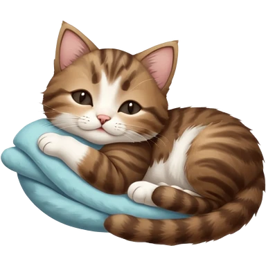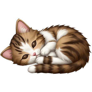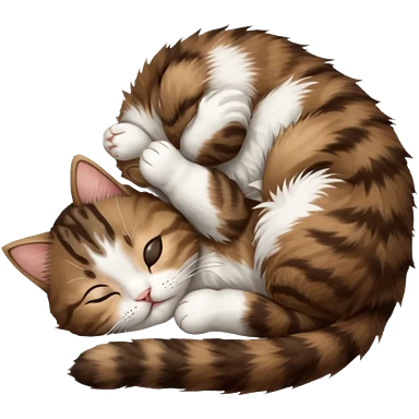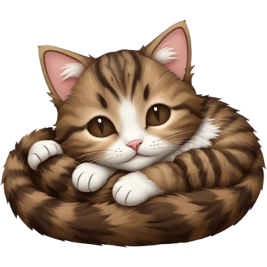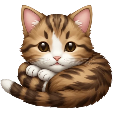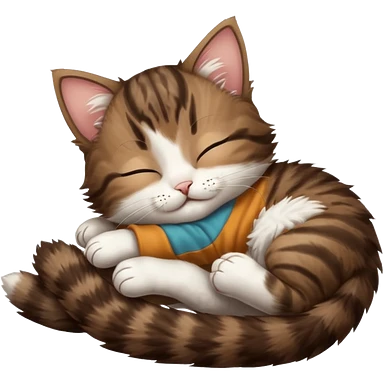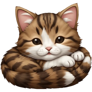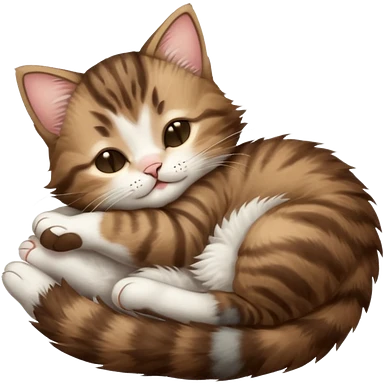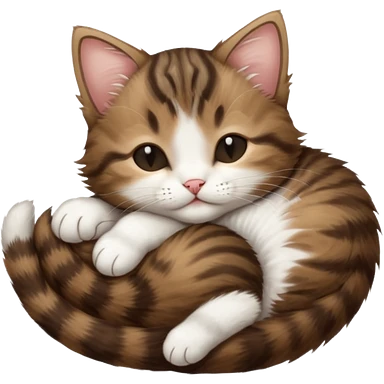 dark brown tabby and white kitten sleeping upside down on its back emoji | AI Emoji Generator