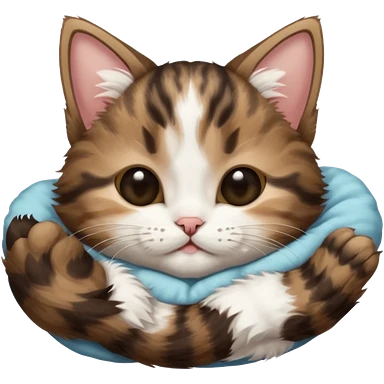 dark brown tabby and white kitten sleeping upside down on its back emoji