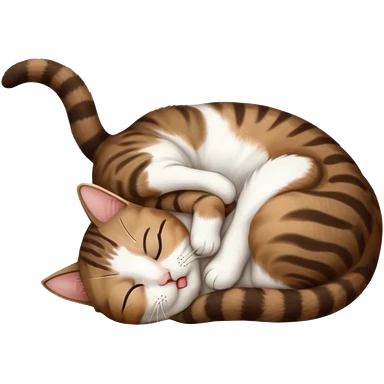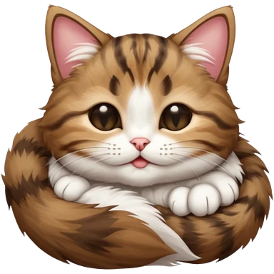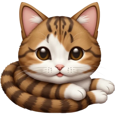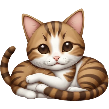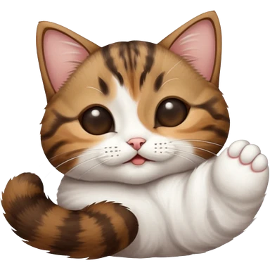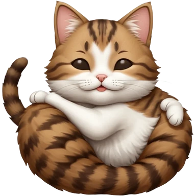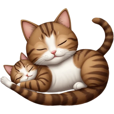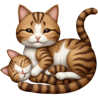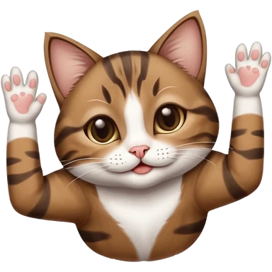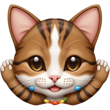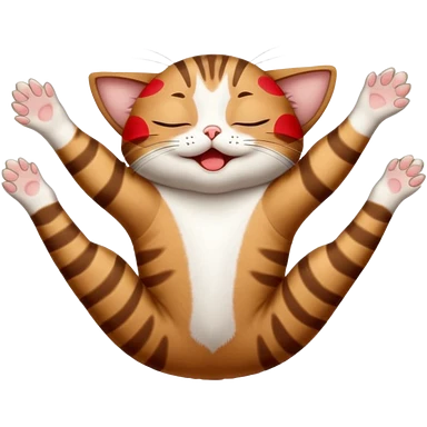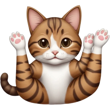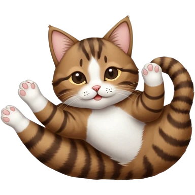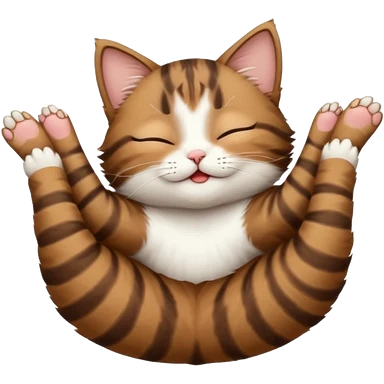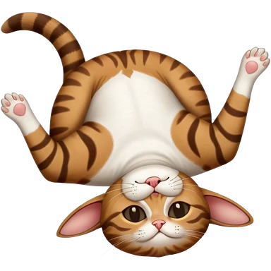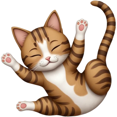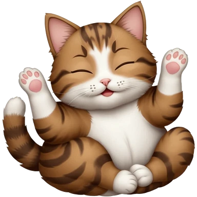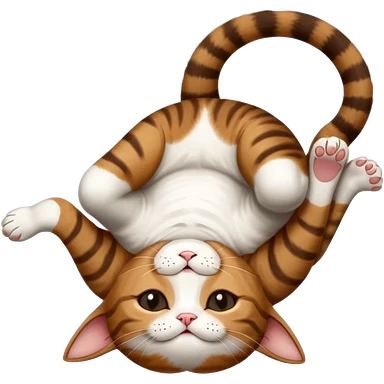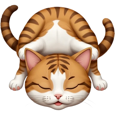 dark brown tabby and white small cat in funny positions upside down with eyes closed emoji | AI Emoji Generator