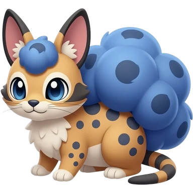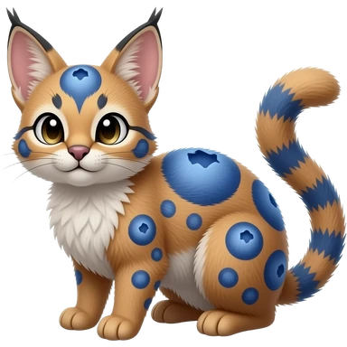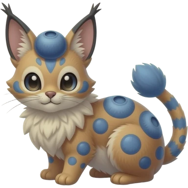 Blueberry-pattern-themed puffy fluffy thick bushy brownish soft realistic romantic vintage antique divine beautiful elegant pretty precious cute young youthful Fakémon-Pokémon-feline-Zeraora-Jolteon-serval-caracal-chinchilla-Minccino-Cinccino-Meowstic-rodent-hybrid-creature (full body) emoji