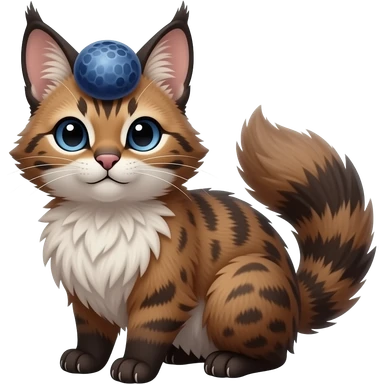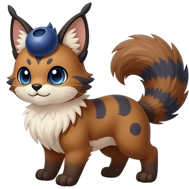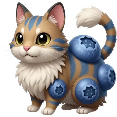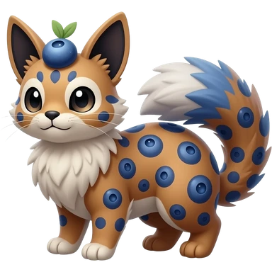 Blueberry-themed puffy fluffy thick bushy brownish soft realistic romantic vintage antique divine beautiful elegant pretty precious cute young youthful Fakémon-Pokémon-feline-Zeraora-Jolteon-serval-caracal-chinchilla-Minccino-Cinccino-Meowstic-rodent-hybrid-creature (full body) emoji