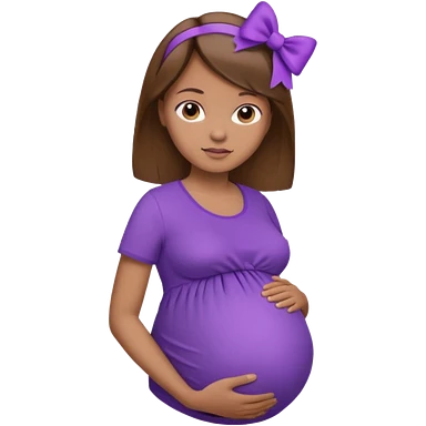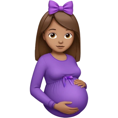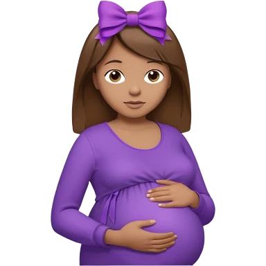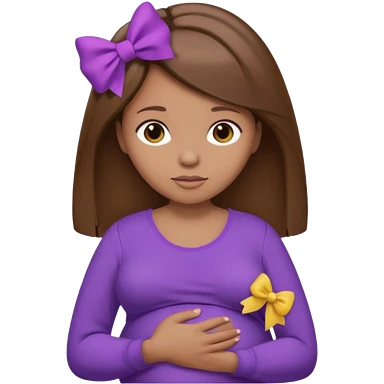 Brown Hair, straight, light brown skin, purple shirt, pregant, head, neck and abdomen only, purble bow in hair emoji