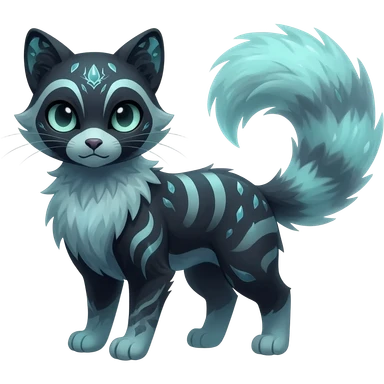 Kawaii dark edgy fantasy feline-vernid-sergal-fursona animal creature with a tufted tail full body with intricate markings emoji