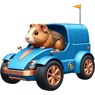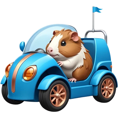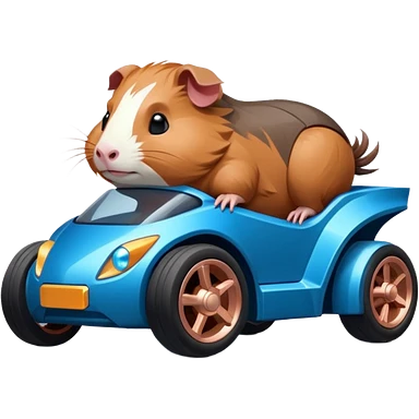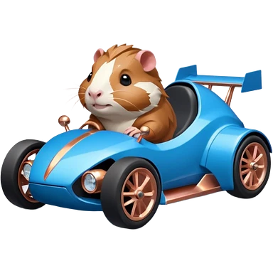 dark crystal blueberry and rosegold-accented cyber faceted-body electric drift-racing car driven by a small cute relaxed chameleon with rear spoiler, roll bar, and wheely bar emoji | AI Emoji Generator