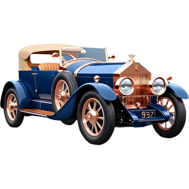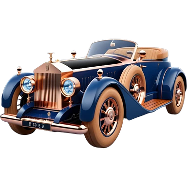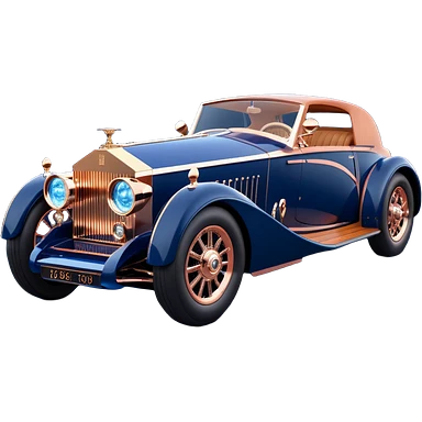 dark blue led lights chauffeur driving hot rod nazi 1927 delicately inlaid rose gold wood barrel accents Scrooge McDuck’s Rolls Royce futuristic electric plasma motors and dynamos with wide racing wheels that are strong agility advanced suspension and steering emoji