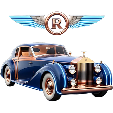 dark blue led lights on a streamlined channeled hot rodded delicately inlaid rose gold and wood accentuated sporty 1932 Rolls Royce with futuristic electric spaceship plasma neon glowing motors and lightening dynamos with wide racing wheels that are held strong by advanced suspension and steering emoji