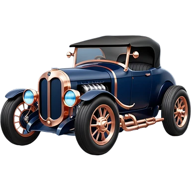 dark blue led lights C-3PO ghost buster’s 1927 delicately inlaid rose gold wood barrel accents Scrooge McDuck Model-T x Rolls Royce efficiently powered by futuristic electric motors and dynamos with wide racing wheels that are strong agile advanced suspension and steering emoji