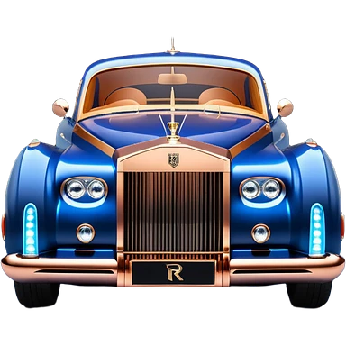 dark blue led lights on a streamlined channeled hot rodded delicately inlaid rose gold and wood accentuated sporty 1959 Rolls Royce with futuristic electric spaceship plasma neon glowing motors and lightening dynamos with wide racing wheels that are held strong by advanced suspension and steering emoji