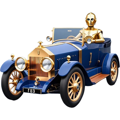 dark blue led lights C-3PO 1927 delicately inlaid rose gold wood barrel accents Scrooge McDuck Rolls Royce efficiently powered by futuristic electric motors and dynamos with wide racing wheels that are strong agile advanced suspension and steering emoji