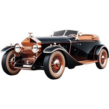 Dark black Bare bones streamlined sporty (stripped down) hot rodded inlaid rose gold and wood accentuated sporty 1932 Rolls Royce with futuristic electric spaceship plasma neon glowing motors and lightening dynamos with wide racing wheels that are held strong by advanced suspension and steering emoji