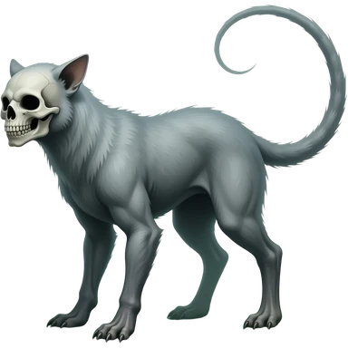 Digitigrade 4-legged spectral spooky dark bleak greyish translucent diaphanous swampy gloomy dark dark-deep-greenish foggy eldritch scary realistic edgy fantasy ghoul-like vernid-sergal-fursona animal creature with a long thin bony tail and skull-face full body emoji