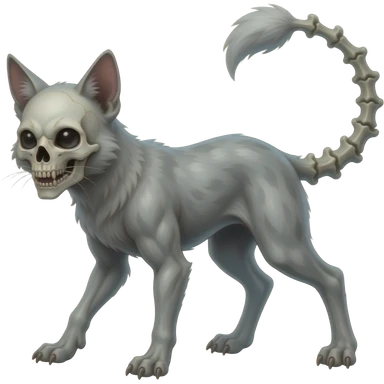 Digitigrade 4-legged spooky dark bleak greyish translucent diaphanous swampy gloomy dark dark-deep-greenish foggy eldritch scary realistic edgy fantasy ghoul-like vernid-sergal-fursona animal creature with a long thin bony tail and skull-face full body emoji