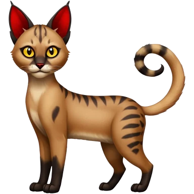Gothic exotic Red and black and white and yellow and edgy and cute shiny Fantasy-Siamese-Bobcat-Caracal-Lykoi-feline-Fakémon-feline-hybrid (full body) emoji