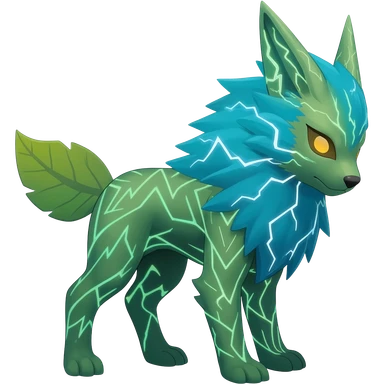 Dark vibrant bright neon edgy Fakémon-Pokémon-Vernid-Leafeon-Jolteon-creature emoji
