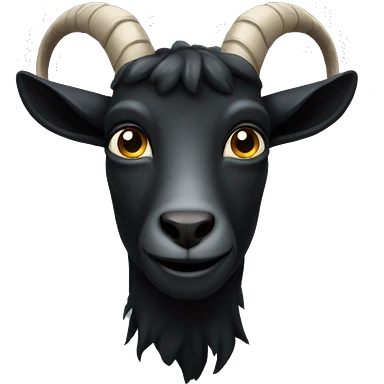 a black and dark goat with two front teeth showing, the black goat doesn’t have any white spots, completely black emoji