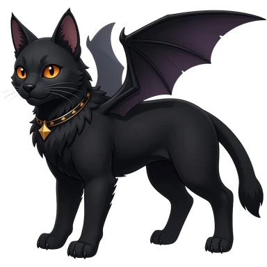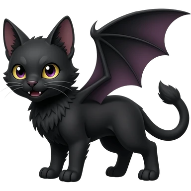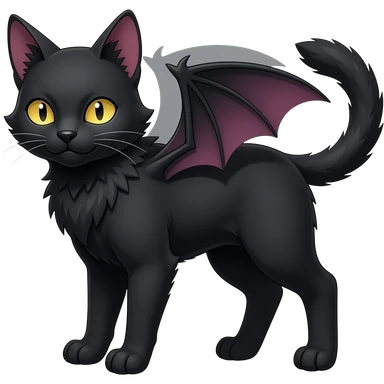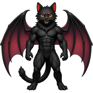 Black cool Vampiric Noivern-Zorua-Litten-Bat-Sphynx-Lykoi-Caracal-cat-Fakemon-fusion full-body emoji