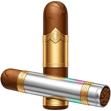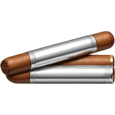 A luxury cigar emoji made of silver chrome, smooth metallic texture, minimal shape, glossy reflections, rich swag aesthetic, iOS emoji style, centered, clean white background emoji