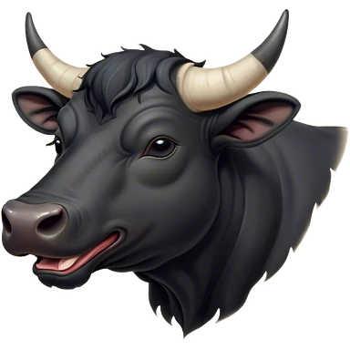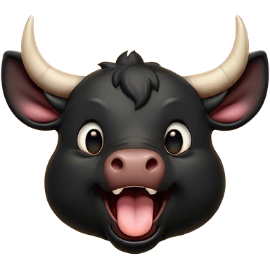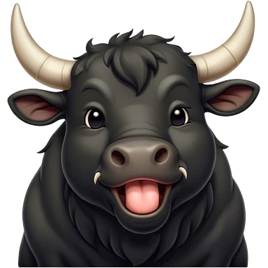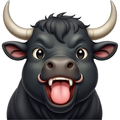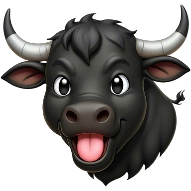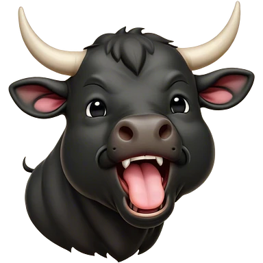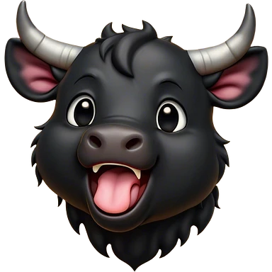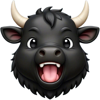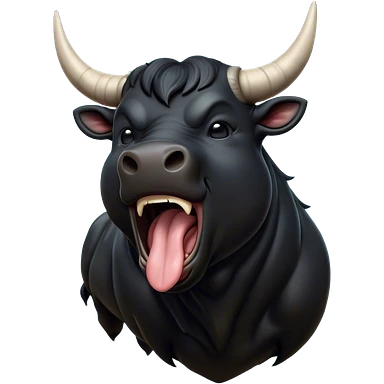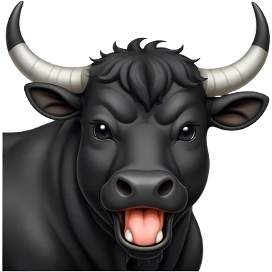 Cinematic Cute Yawning Black Bull Portrait Emoji, Head tilted slightly with a dramatic, wide-open yawn, showcasing a smooth, pure black hide with a subtle texture, floppy ears slightly drooping, round dark eyes barely open in drowsy contentment, Simplified yet irresistibly adorable features, highly detailed, glowing with a soft, cozy glow, high shine, relaxed yet expressive, stylized with a touch of rugged whimsy, bright and endearing, soft glowing outline, capturing the essence of a sleepy yet affectionate guardian, so drowsy it feels like it could charge right out of the screen and curl up for a nap! emoji