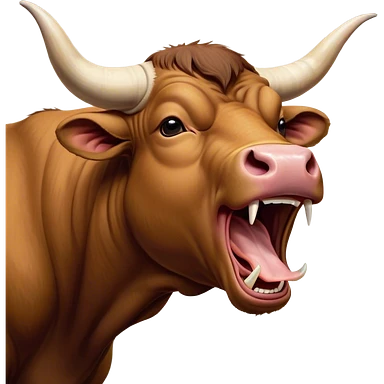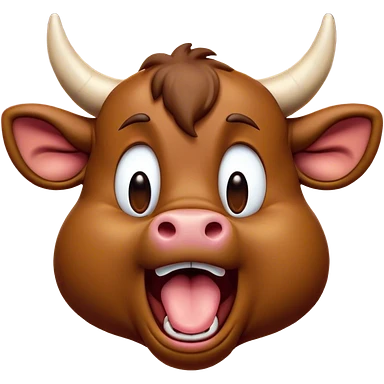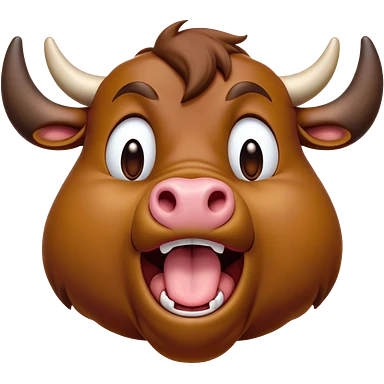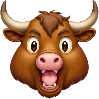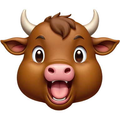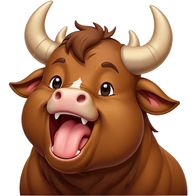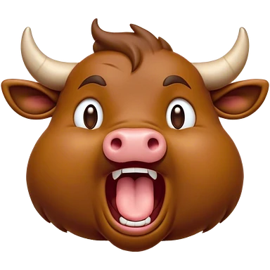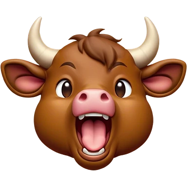 Cinematic Cute Yawning Brown Bull Portrait Emoji, Head tilted slightly with a dramatic, wide-open yawn, showcasing a smooth, rich brown hide with a subtle texture, floppy ears slightly drooping, round dark eyes barely open in drowsy contentment, Simplified yet irresistibly adorable features, highly detailed, glowing with a soft, cozy glow, high shine, relaxed yet expressive, stylized with a touch of rugged whimsy, bright and endearing, soft glowing outline, capturing the essence of a sleepy yet affectionate guardian, so drowsy it feels like it could charge right out of the screen and curl up for a nap! emoji