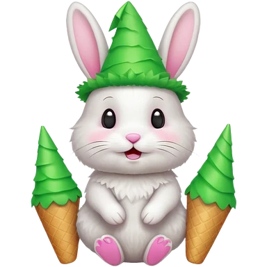 Rabbit in Green Party Hat – white bunny with cone party hat emoji
