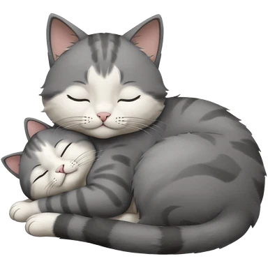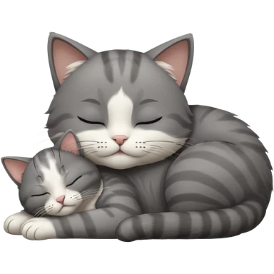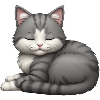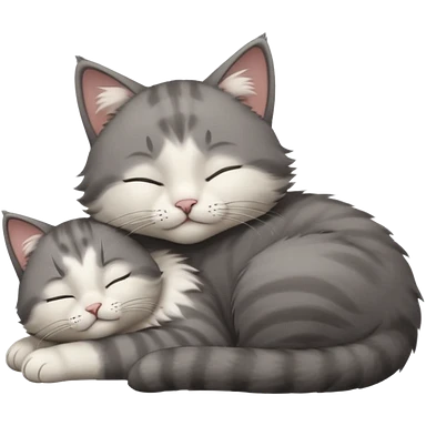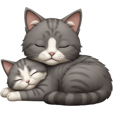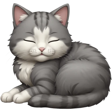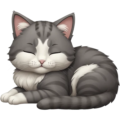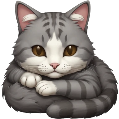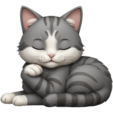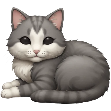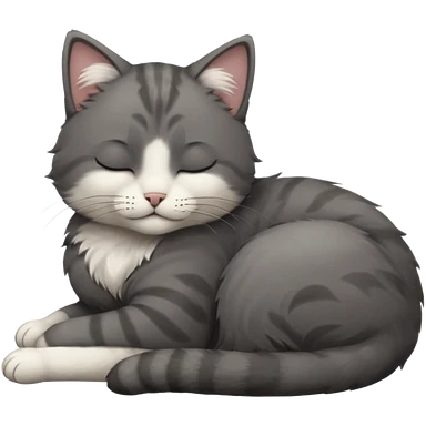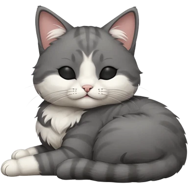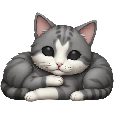 dark grey and white small cat with closed eyes, leaning his head on his paw while leaning on his elbow lying down emoji | AI Emoji Generator