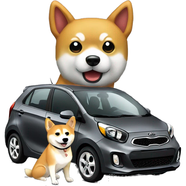 Dark grey Kia picanto with a Shiba Inu inside of it emoji | AI Emoji Generator
