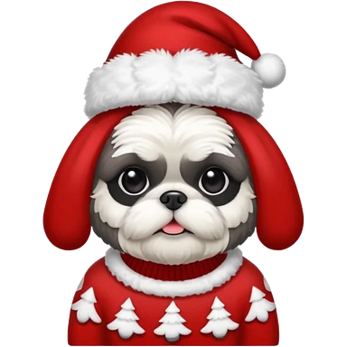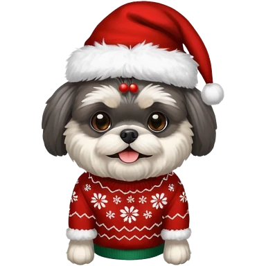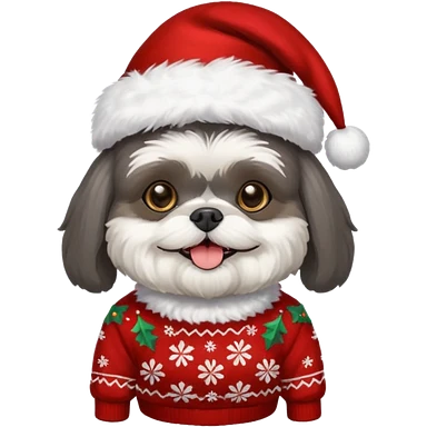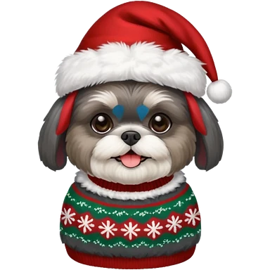 dark grey shih tzu christmas sweater and hat emoji | AI Emoji Generator