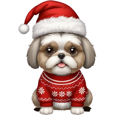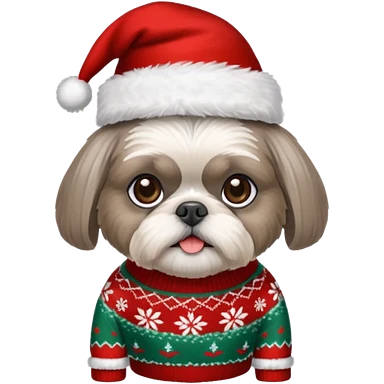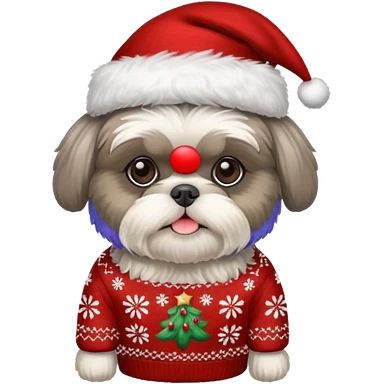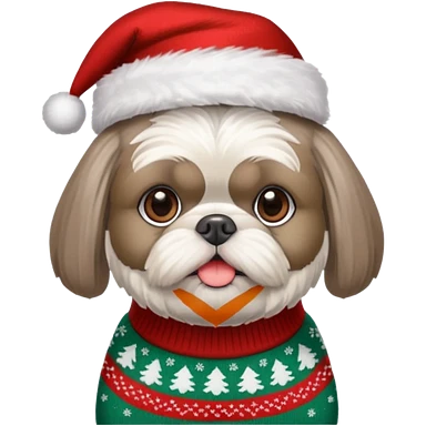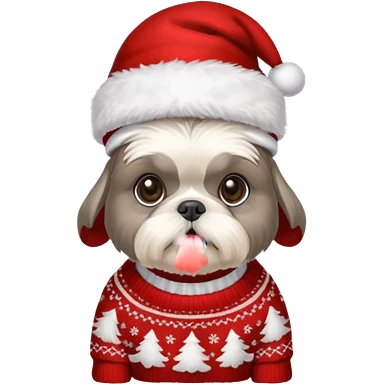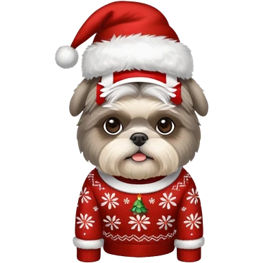 dark grey shih tzu christmas sweater and hat emoji | AI Emoji Generator