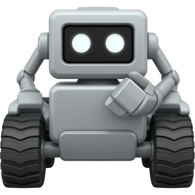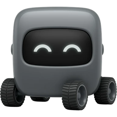 Dark grey solid square with 6 wheels and a display shows a white robot eyes emoji