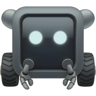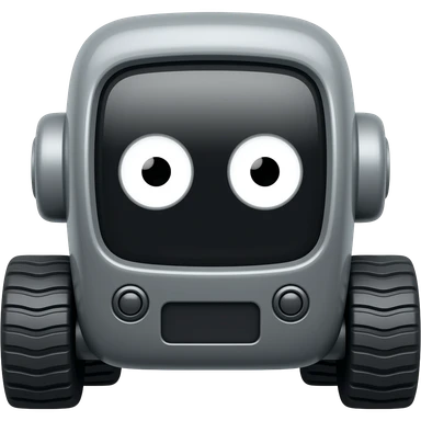 Dark grey solid rectangle with 4 wheels and a display shows a white robot eyes as the delivery robot emoji | AI Emoji Generator