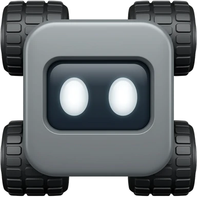 Grey solid square with 4 wheels and a display showing white eyes emoji