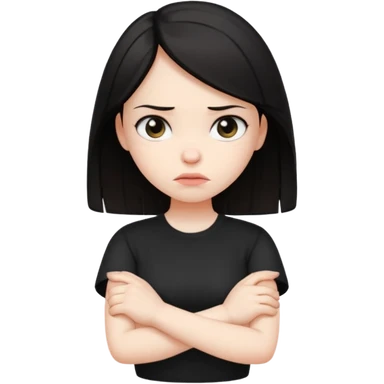 The dark-haired girl folded her arms in front of her chest with a displeased expression on her face emoji