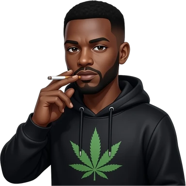 African Gothic man smoking a weed cigarette, wearing black hoodiess with a Marijuana leaf on each hoodie. Smoke coming from the cigarettes around him in the air. emoji